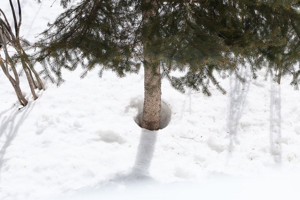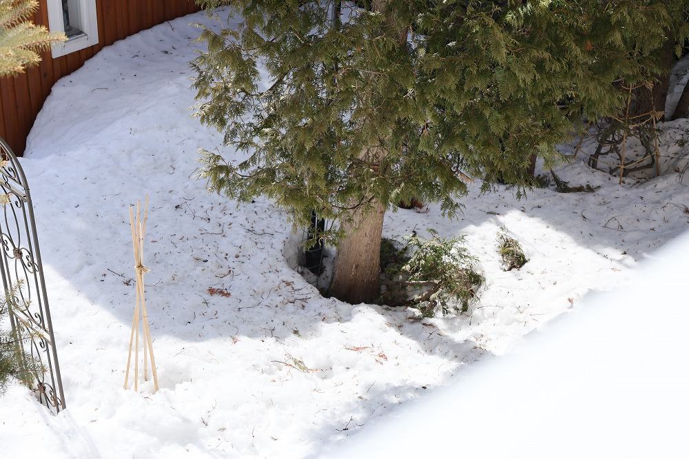 2/23の庭 投稿日時: 2026-02-23 投稿者: はるみんプラス気温が続いたので、雪がだいぶ縮んで来ました。2階の窓から撮影(12:19) 木の根本も「根開け」してきました。 ■2026/02/23(月)曇/晴+5.1→+7.3